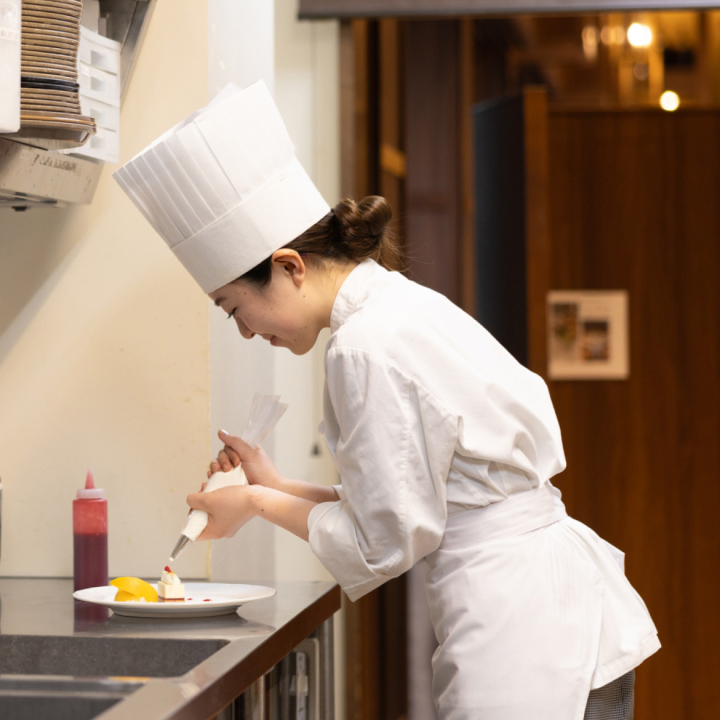 デザートビュッフェの一部製作やケーキの仕上げを担当し、味と見た目を整える工程に本格的に関わる段階へ。