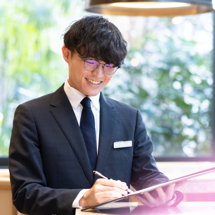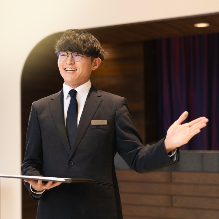 「ここで結婚式を挙げたい」 その言葉を引き出せた時の達成感。 成約後に「あなたが担当でよかった」と言ってもらえる時の喜びこそ、仕事の原動力となるはず。プランナーやドレススタイリスト、料理スタッフと連携しながら、お最適な提案をする。 チームで成果を出せる面白さも、この仕事の魅力です。